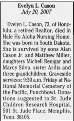 Walter Henry Miller in 1955 (1916-2004), m2. Alan Robert Cason (1918-2007).
