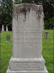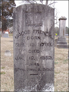 Jacob French b. Sept 19, 1799 Botetourt VA (from French web page) m. Sarah Kountz (from French Web page), father of James Wesley French b. Aug 19, 1828. (from your French Web page) m. Elizabeth Johnson Nov 8, 1849 Knox Co.TN (Knox Co. Mar. Rec), Elizabeth was the dau of Thomas Johnson & Martha Rodgers and was born Aug 11, 1828 in Knox Co. Now here is the question. I have the death date as April 5, 1901 BUT your site has April 4, 1879. You also have the same cemetery as Logans Chapel Methodist Church Cemetery, Maryville, Blount Co. This information is found in the McClung Collection in Knox Co and I would like to correct their family records but since I havenÕt been to the cemetery I would like to double check. I actually wondered if the 1901 death date was for his second wife?? Any thoughts on this?