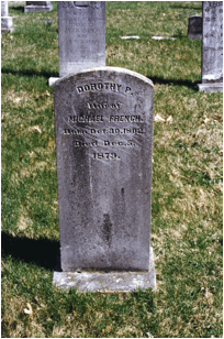 Sarah Catherine French, born April 22, 1846, was the daughter of Michael French (1799-1867) and Dorothy Pauline Koontz (1802-1879).[25] Two households down the road in the 1850 census are listed the family of Jacob French (1799-1882) and his wife Sarah. Jacob French was the twin brother of Michael French and his wife Sarah Koontz (1806-1889) was the younger sister of MichaelÕs wife Dorothy. Twin brothers married sisters! All four and other French relatives are buried in the New Salem Cemetery in South Knox County.