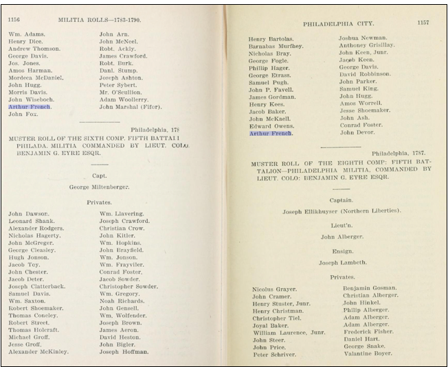 Philadelphia Militia commanded by Lieut. Col. Joseph Dean. Arthur French was a