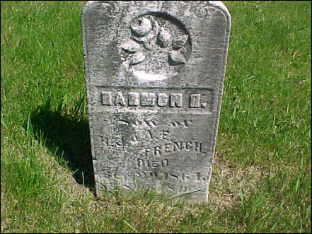 3.1 Harmon H. French, b. 28 or 29 Apr 1856 in WI, d. 29 Dec 1864 at age 8 years, 8 months, the son of H. J. and A. E., and is buried at the Oak Center Cemetery in Fond du Lac Co., WI.