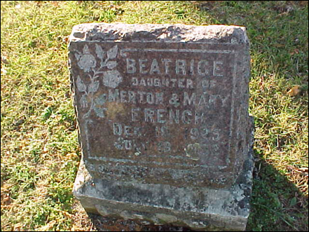 5.5 Beatrice M. French, b. 19 Dec 1925, and living with her parents in the 1930 census of Fond du Lac, WI. She d. 18 Jun 1932, age 6, and is buried at the Saint Cloud Cemetery, Saint Cloud, Fond du Lac Co., WI. She was killed in a car accident.