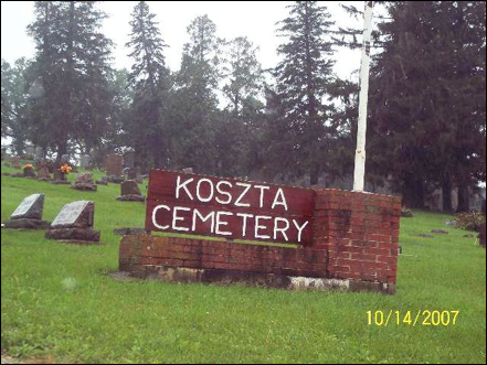 A Hungarian cemetery, sometimes misspelled as Kozsta instead of Koszta. It is on Hwy 212 Pozzydaz, 5 miles west of Marengo, on the south hillside, above Honey Creek, north town of Koszta. It is one of the earliest in the county with stones dated from 1844. Probably 80% or more of these people are in some form related.
