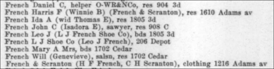 5.1 Harris H. French, b. 1853, m1. unk who d. before 1882, m2. Adelaid R. in 1882, d. 1903.