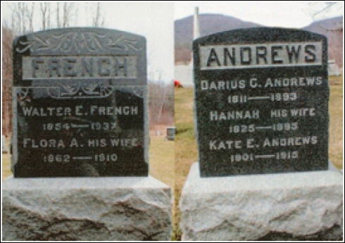Walter E. French, his wife Flora Andrews, and their two infant children buried here.