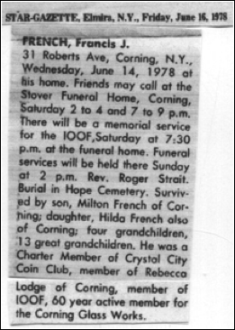 The French Hill Cemetery in Cameron, Steuben Co., NY (just north of Tioga Co.) lists many Frenches from an unknown French line.