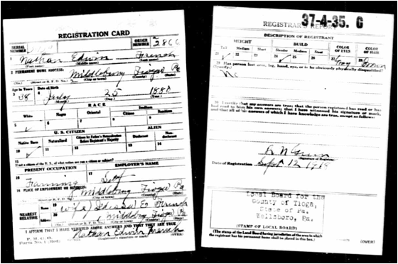 This family migrated from New Jersey to the town of Middlebury, Tioga Co., PA. Other members of the family moved to Port Allegany, McKean Co., PA and to Roulette, Potter Co., PA. Descendants moved to Olean, Cattaraugus Co., NY; Steuben Co., NY and Shamokin, Northumberland Co., PA. Other townships in NY: Erin, Wellsville, Elmira, Troopsburg, East Aurora, and Buffalo. Other townships in PA: Fishing Creek, Wellsboro, Little Marsh, Delmar, Port Allegany, Blossburg, and Clara.