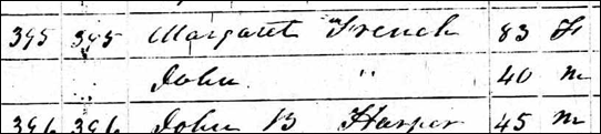 á If he fit in generation 3, he would be the oldest son of 2nd generation George French, FFA Chart #136, whose son George moved to SC. No proof has been found either way. His age does not fit into generation 4 of this line.