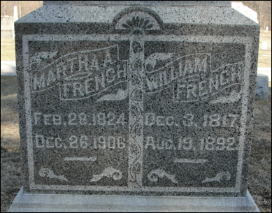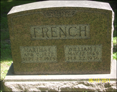 3.4 John Enos French, b. 5 May 1845 in IL. In 1850 census of Champaign, IL, m. Martha Ellen Giffin, d. 13 Dec 1891.