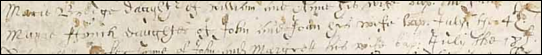 After my trip to England in Jun 2010, I had a researcher recheck the information I had found concerning John's daughter Marie. Her name, her parents' names, and the date of her birth, and place of her birth seemed to fit in exactly. But now my researcher tells me I misread the baptism record and it says FINCH, not FRENCH. There are spelling errors in baptismal records. I rarely have come across a woman named Joan married to any French in this area of Essex, so when I found this one, and their daughter Marie was born only 2 miles from where they resided in Halstead and 5 miles from Great Tey, I thought it was a natural fit. But then, she was born the year before they got married which still could have happened, but the child would have been listed as "baseborn" or the child of only Joan and not also John, so that concluded that she is not the correct person. But I still could not find any other mention to this Joan in any other family. I noted this record as not part of this chart for others to research further.