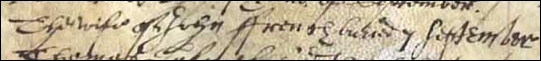1.1* William French, b. ca. 1580 perhaps in Suffolk County, but not at St. BotolphÕs Parish in Colchester; that parish register starts in 1560 and he is not listed. There is a record of a William French who d. 4 Sep 1638 in Colchester, a peddler (going from place to place selling small goods), Ref. ESO (SEAX) D/P 203/1/1, image 56 (see image below). No verification exists showing that he is one and the same; there are no others listed, but that doesnÕt mean there were none. WilliamÕs brother, John, had a son named William, also of Colchester who could have been the one who died in 1638, age 30.