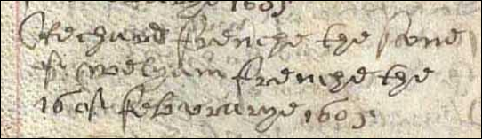 Rechard Frenche the sone of Welyam Frenche the 16 of Februarye 1605, which is 1606 in the Old Calendar.
