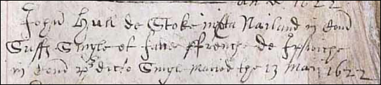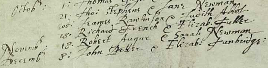 The parish records of Colchester do not show any other children born to this couple. However, either John or his brother William could have had two daughters, Jane French and Elizabeth French, who had moved to nearby Stoke by Nayland in Suffolk County only about 15 minutes driving distance away. These two women got married in the St. BotolphÕs Church in Colchester, and it was the custom for women to marry in their hometown or the town in which their parentsÕ lived. Jane French married John Null on 13 May 1622. Elizabeth French married Bartholomew Burgess on 28 Dec 1624. They both would have been the right age to be the daughters of either John or William.