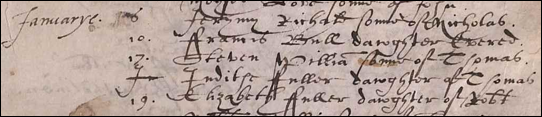 daughter of William?), m. Bartholomew Burgess on 28 Dec 1624 (see below)
