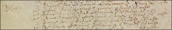 2.1* Richard French Sr., christened 16 Feb 1605/6 in St. BotolphÕs Church, Colchester, Essex, the son of William French, D/P 203/1/1, Image 15. According to researcher Peter C. Nutt in Essex County, England, this image below reads: