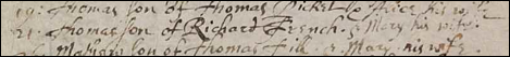 DonÕt be confused with the Richard French, son of William, christened in Coggeshall on 8 Apr 1606, Image 17, D/P 36/1/1. My researcher in Suffolk, Joanna Martin [31], says it reads ÒRichard TreweÓ (image not shown). Richard French Sr. is not listed in the Coggeshall parish register as being baptized there.