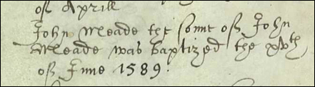 [22] Index of Wills at Chelmsford, 1400-1619 lists an Elizabeth Meade, 1595, widow in Chipping Ongar, reference 156 ER 17 at the Essex Record Office in Chelmsford.