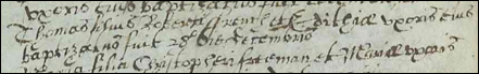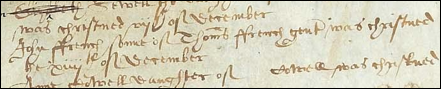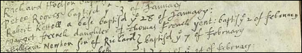 Since all of the following baptisms in Halstead are fathered by 3 men (Christopher, William, and Thomas), it seems as though these 3 men could be brothers since these births all occur between 1582 and 1611. The chart number is listed at the end of each line. See England Parish Registers of the surname French.