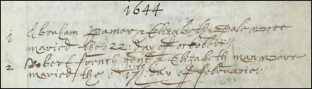 [48] 6 July 1643 -- Petition of Christopher Newstead. According to the order, petitioner repaired to Stisted in Essex, and demanded of Thomas French, the churchwarden, and Robert Wood, the constable, the possession of the church. French and Wood refused to assist petitioner, but allowed him to be beaten and his coat torn off his back. (Note the families of Wood and French in this line indicating that they could have moved to Stisted.) FFA Chart #EB.