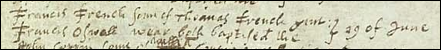 [25] Bury St. Edmunds Record Office, Thomas French, b. 1587 in Frating, Suffolk (at that time, now Essex), Reference 27 TM 0923.
