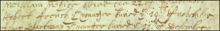 [49] Ancestry.co.uk, London, England, Baptisms, Marriages, and Burials of St. Dunstans-in-the-West, William French was buried on 16 May 1621.
