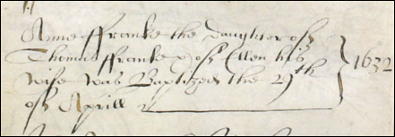Anna ffrench the daughter of Thomas ffrench and Ellen his wife was baptized this 29th of April 1632.