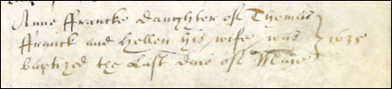 Anne ffrench daughter of Thomas ffrench and Ellen his wife was baptized _____ 1635.