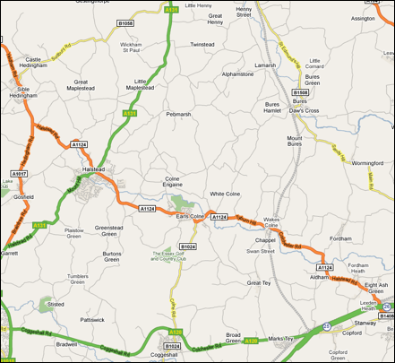 From this map, you may be able to spot Colchester, and Coggeshall is to the SW of Colchester.