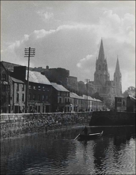 Boat on the river at FrenchŐs Quay, Cork. Frenche's Quay is named after James French who was a wine merchant in Cork in the late seventeenth and early eighteenth centuries. His house stood at the foot of Barrack Street adjoining present-day Frenche's Quay. James French was very prominent in the civic life of Cork. He was a member of Cork Corporation, a magistrate and was Mayor of Cork in 1696. His business interests dovetailed with his civic activities as he frequently supplied the wine which was drunk by the city fathers on festive occasions. His son Philip served as Mayor of Cork in 1715 and another son Abraham held the same office in 1717. It is quite likely that the Vikings had a settlement along what later became French's Quay [16].