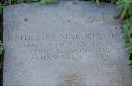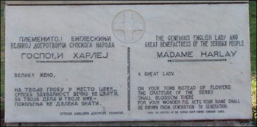 Her funeral was impressive, conducted with full military honours and all the martial ceremony that she would have loved. Escorted by Serbian Royal Guards, British and French military bands, attende by Prince George of Serbia, the British Commander, General Sir George Milne, amd othr army chiefs, with French soldiers carrying huge laurel wreaths, Mrs. Harley was laud to rest in the Allied War Cemetery.
