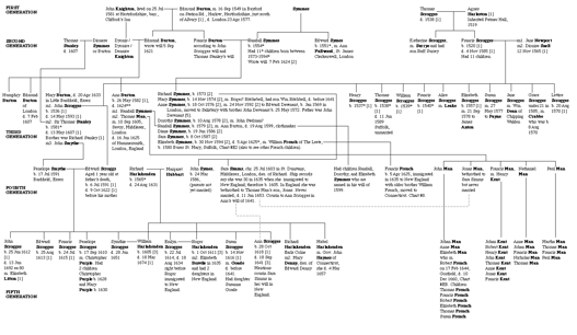 Pedigree Chart for the Families Scrogges, Burton, Symmes, Man, French, and Harlakenden
