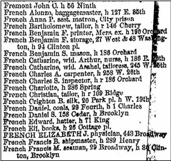In the 1830 census of New York County, 14 head of households with the surname French appear, most of the names are the same as in 1820, but an additional name of interest is a “Mr. French”, edited to be Frederick French, he is age 70-79 and his wife is 60-69, no others listed.