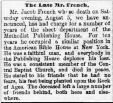 Note: From an earlier revision of this line, Jesse French was reported as living in Newport Pagnell, Buckinghamshire, Northamptonshire, England. This research has been found to be totally incorrect; “a” Jesse French was born in that town in 1846, but he was still living in that city in the 1851 England Census when in reality, the Jesse French of the ancestry presented here is listed in the 1850 Census of New York, age 3, living with his father Jacob. Another unrelated misconception is that Jacob married Mary Ann Ansell which surname was from a hard-to-read document and is not part of this family whatsoever.