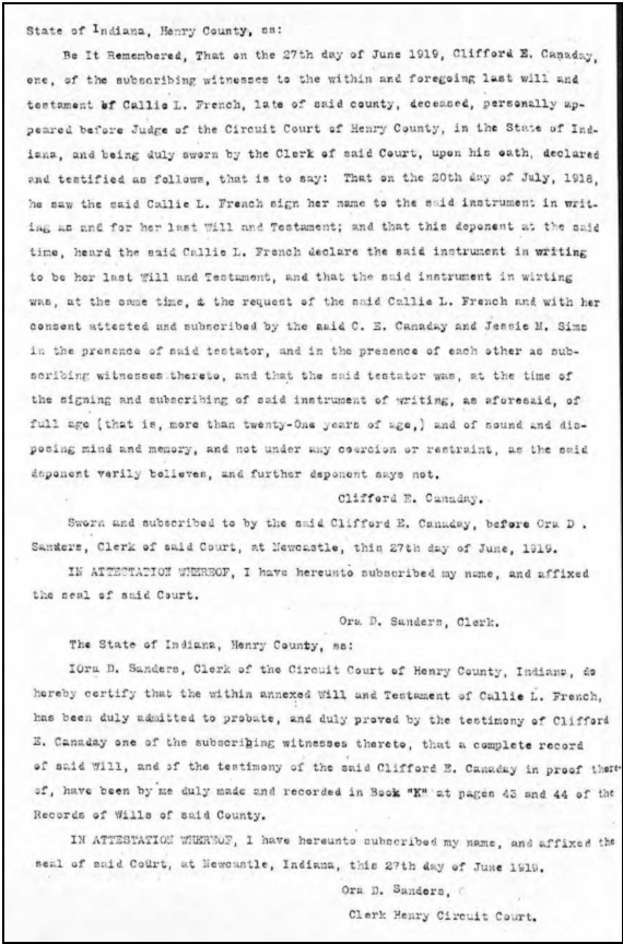 10. Horace Edgar French, mail: epb5151@att.net, (email good in 2019), he sent most of the photos on this page in a zip file. It was the photo album of Callie French, inherited by Edgar French. His grandfather was Horace Edgar French who lived in New Castle, IN, and operated the French piano factory until around the late fifties or early sixties. On 25 Apr 2019 from Cumming, GA.