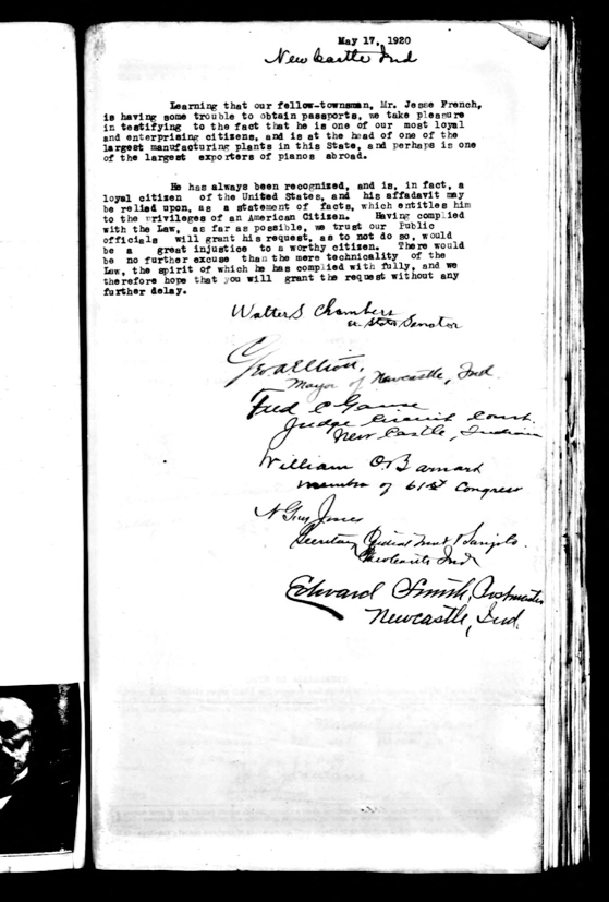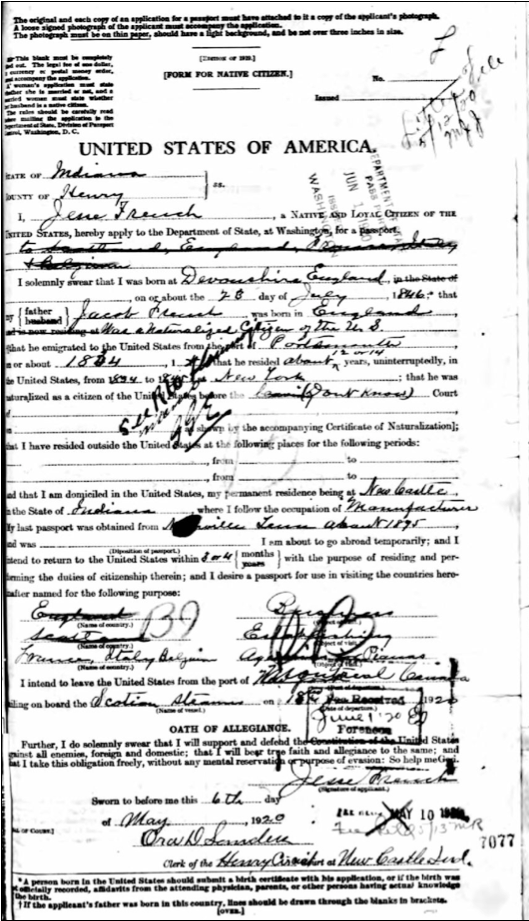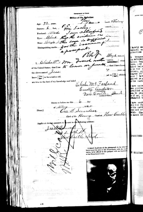 Jesse French’s Passport Application for Business