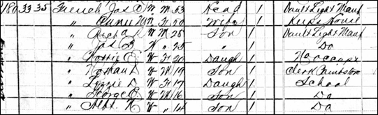 [5] There is a Daniel Constantine in Bangor, Penobscot Co., ME, born in 1845. In 1860, he lived in Lewiston, Androscoggin Co., ME. This is exactly the time and place when James C. French married Ann Rice. The Constantine family was from Ireland.