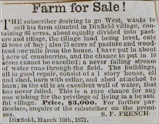 Dr. John S. French immigrated to Norway, Oxford Co., ME, in 1821.