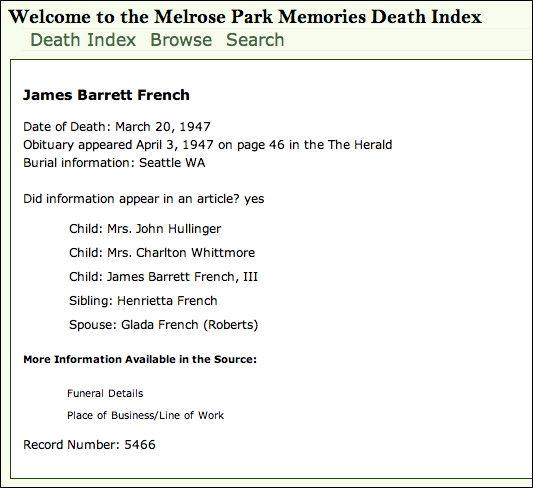 [14] Maine Genealogy: http://www.mainegenealogy.net/archives_search_results.asp?firstname=&lastname=French&spelling=starts&category=&viewtype=summary.