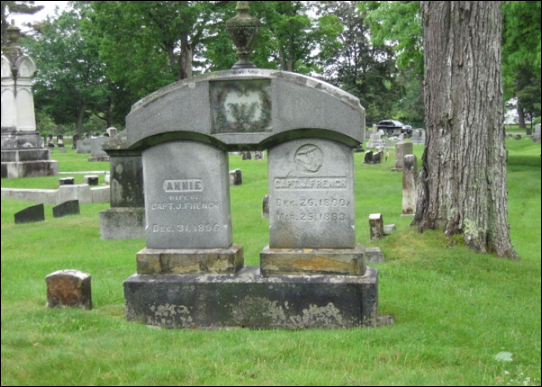 Capt. James French, b. 26 Dec 1800, d. 25 Mar 1883, buried at the Mount Hope Cemetery in Bangor, ME. He m. Annie who d. 31 Dec 1896 and is buried next to her husband. See http://www.gravestonerubbingsupplies.com/index.php/galleries/view/master_gallery/79. James was the son of Ezekiel and Phoebe (Weed) French, relatives of this J. C. French line of Austin, ME.