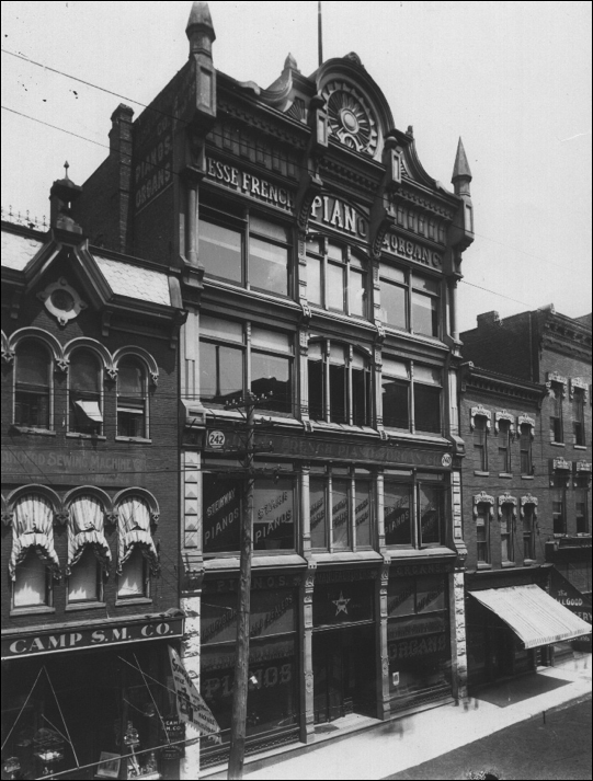 The Thiebes-Stierlin Music Company Building where Jesse French had his piano company at 1006 Olive St., St. Louis, MO, is on the National Register of Historic Places. It was designed by Theodore Link and built in 1905.