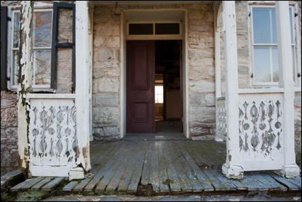 The stone house sits well back from Downsville Pike down a curved gravel lane, beyond a metal farm gate and surrounded by cornfields and pasture. A new exit from Interstate 70 will soon bring traffic by the old house, and new businesses will be springing up along the route. The area will change rapidly.
