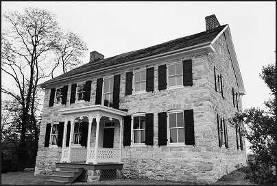 The stone house sits well back from Downsville Pike down a curved gravel lane, behind a metal farm gate, surrounded by cornfields and pasture. A new exit from Interstate 70 will soon bring traffic by the old house, and new businesses will be springing up along the route. The area will change rapidly.